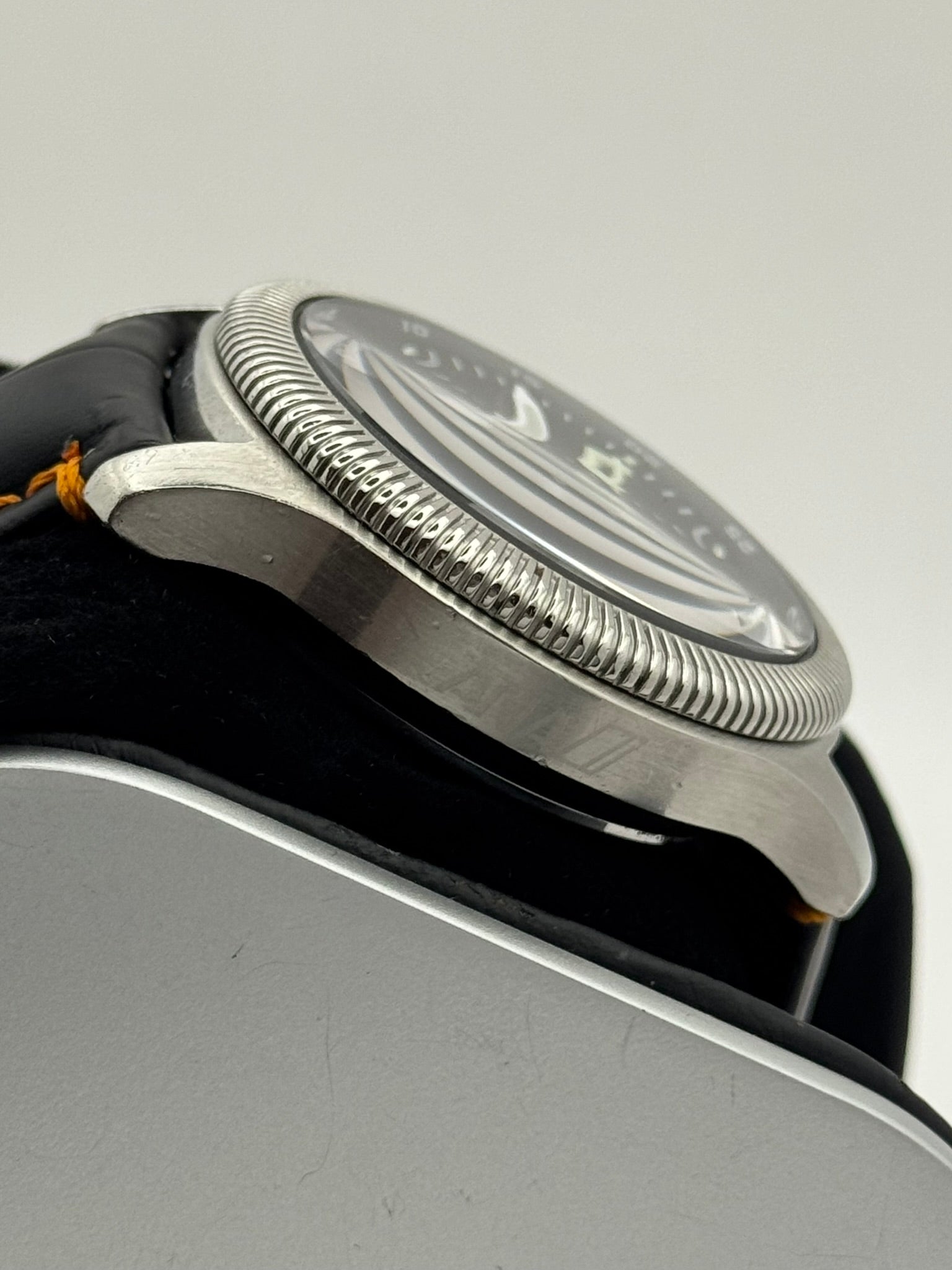 This Japan Domestic Market (JDM) Seiko pilot’s watch was developed in collaboration with All Nippon Airways (ANA), as indicated on its caseback. Released in the early 2000s, the model embodies Seiko’s utilitarian aviation design for professionals who require legibility, durability, and reliability at altitude. Powered by the robust Seiko 7S26 automatic movement, it balances function and style while retaining the brand’s core philosophy of accessible mechanical watchmaking. The ANA edition remains a niche collector’s piece due to its limited availability and distinctive co-branded design.